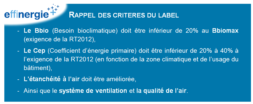 Pour pouvoir prétendre à la certification BEPOS-Effinergie 2013, le bâtiment doit tout d’abord respecter les critères du label Effinergie+.