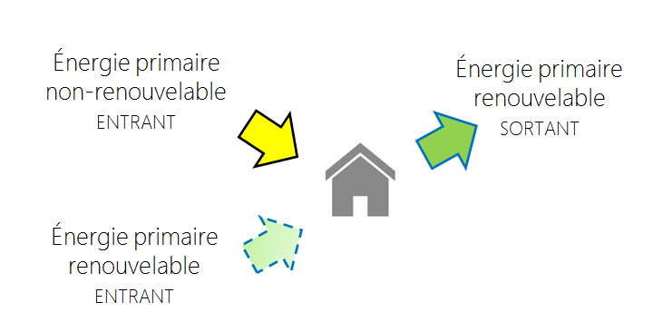 Pour terminer, le bâtiment doit afficher un Bilan d’énergie primaire non renouvelable (Bilanepnr) inférieur au seuil défini pour la zone (selon la région, le contexte urbain, etc…), c’est-à-dire que sa consommation d’énergie non-renouvelable ne doit pas dépasser le montant de sa production propre d’énergie renouvelable (énergie primaire sortant).