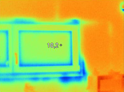 Restons sur l’exemple de l’isolation. Grâce à une caméra thermique qui détecte le rayonnement infrarouge des objets (parois, cadres, gaines…), on peut mesurer leur température et identifier les infiltrations d’air, les ponts thermiques ou les défauts d’isolation. Sur le thermogramme ci-contre, on voit par exemple que les menuiseries ne sont pas étanches à l’air. Les infiltrations sont à l’origine de la sensation de courants d’air vécue par l’usager. De même, les traces jaunes sur les parois à droite et au-dessus de la fenêtre sont la preuve que la jonction des plaques isolantes a été bâclée, voire oubliée.